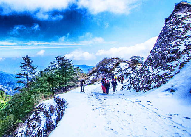 The Sandakphu Trek in winter is a breathtaking challenge, Renowned for its panoramic views of the worlds highest mountains, including Mt. Kanchenjunga and Mt Everest.